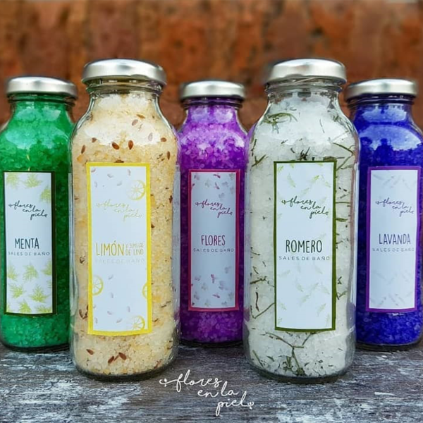 Nuestras sales de baño son 100% artesanales, vienen en botellita de vidrio y tenemos también fragancias para los más peques de la familia. Elaboradas con la mejor sal Marina y aceites esenciales más agregados se semillas, té entre otros.